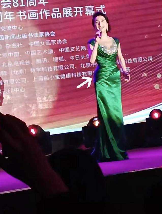 从演出现场视频来看,当天汤灿身穿绿色礼裙可谓是仪态万千,这件礼裙设计得颇为精巧,衣领部位还运用了镶钻点缀,看上去华丽且璀璨,更能衬托出汤灿婉约优雅的优越气质。