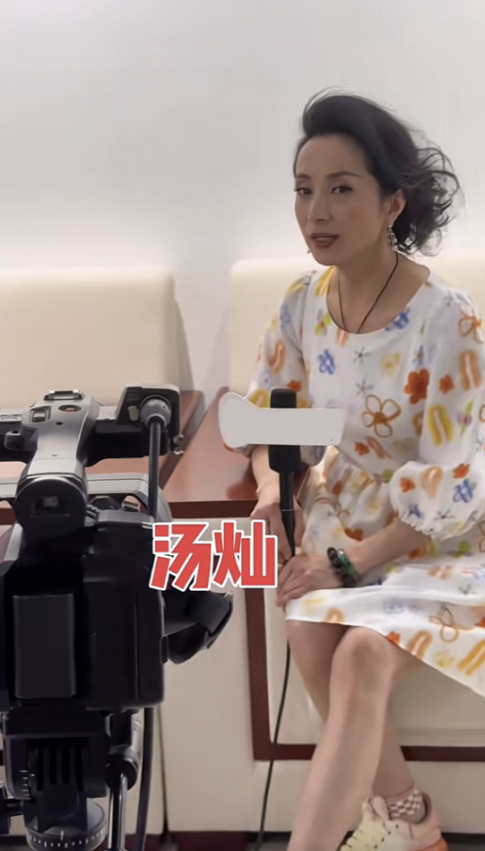 汤灿退圈12年后复出,穿紧身裙小腹凸起,戴上等翡翠手镯珠光宝气