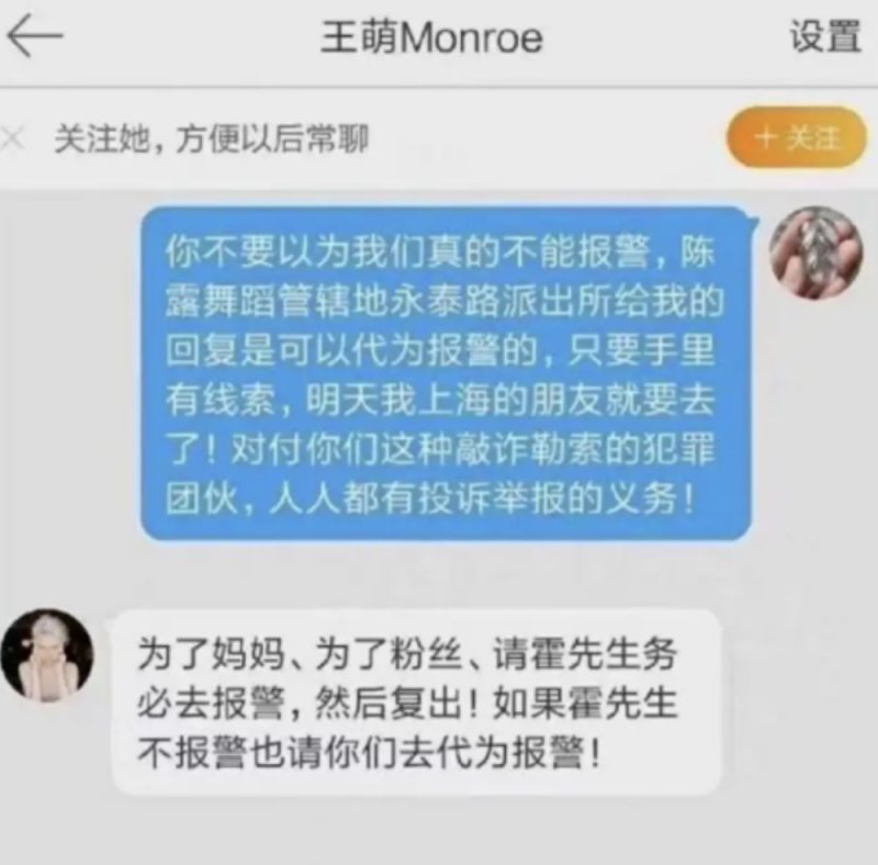 神奇的是,从头到尾,霍尊和陈露对线了N个来回,并没有提到报警的事,全靠两个“热心”的朋友王萌和陈岚。