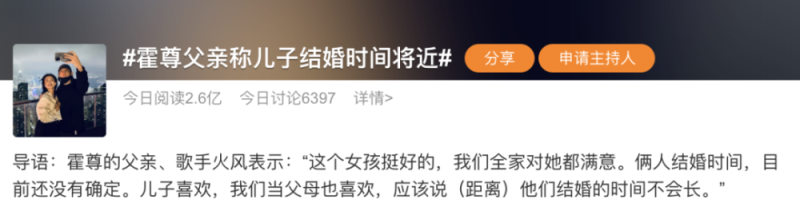 霍尊刚官宣新恋情不到一天,他的父亲、歌手火风,就出来替他官宣:婚事将近。