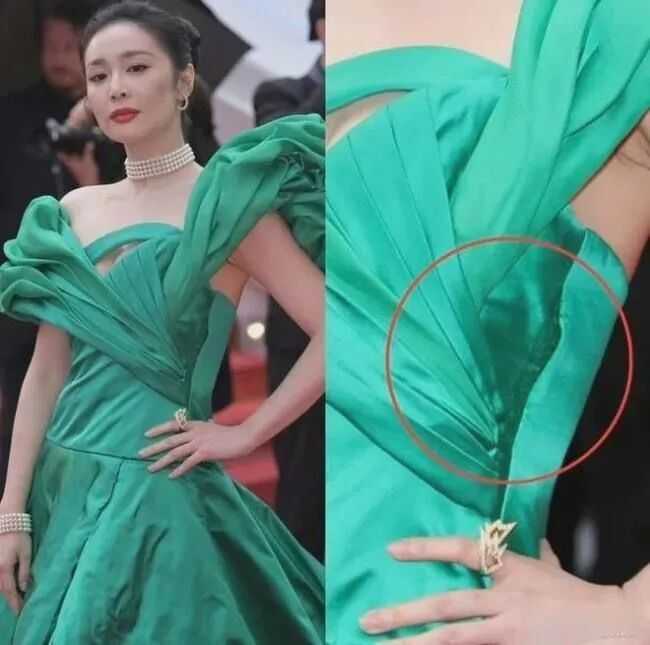 网友看见红毯上礼服开线的照片之后,纷纷吐槽裙子太劣质了,材料非常的廉价。