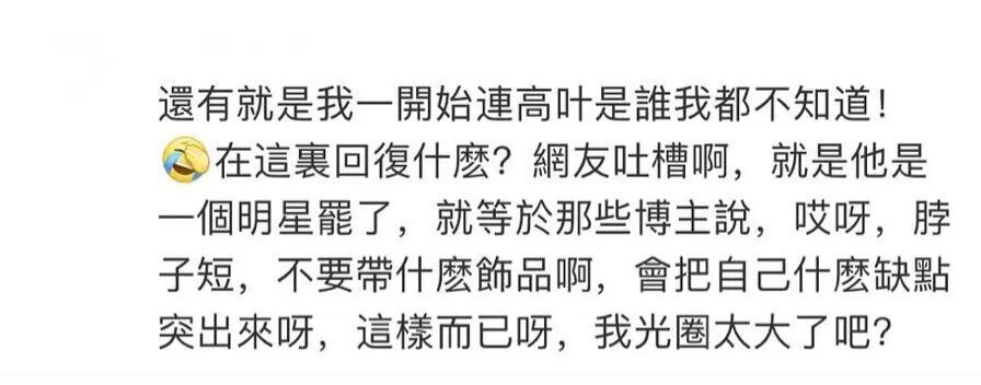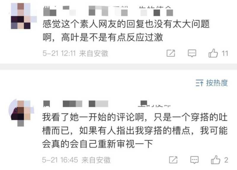 在高强度的攻击之下,网友不堪其扰,发文回应称她只是觉得高叶的搭配有问题,好心提出自己的建议,并没有恶意。