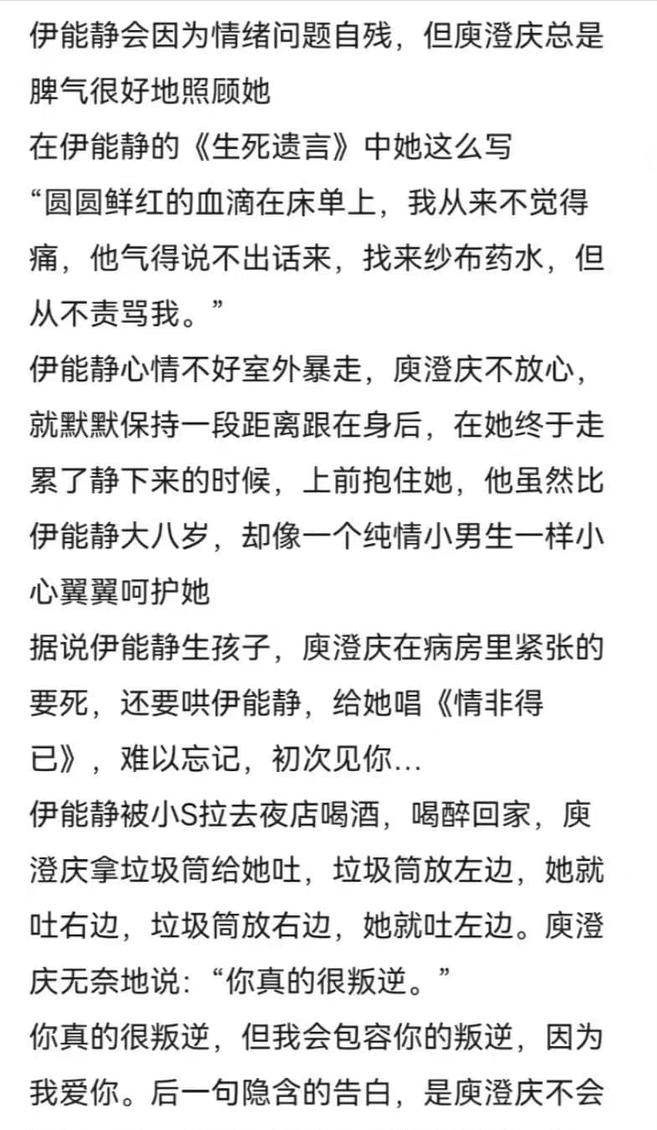 伊能静还曾在自己出版的书中公开表露对庾澄庆的依赖与爱意,只可惜相爱容易相守难,因为伊能静肩负着原生家庭带来的创伤,导致她在上一段婚姻中地位失衡,长期的压抑与委屈致使她最终选择决绝放手。