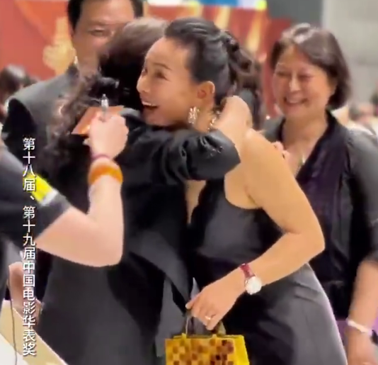 在华表奖的后台上,70岁的刘晓庆和62岁的陈冲相遇了,两人还热烈拥抱和聊天。
