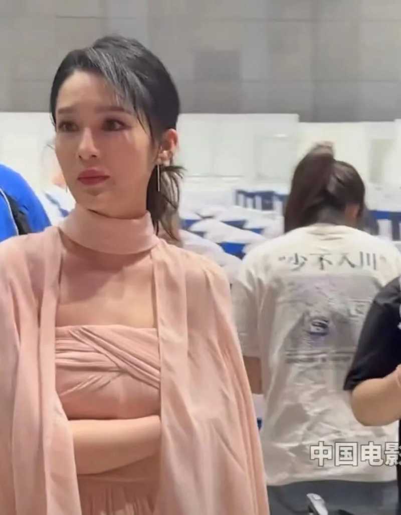 不过在现场拍到的生图来看,可能因为没灯光的修饰,李沁这条粉色裙子显得有点暗沉,有几分廉价感,看起来没有精修图那么惊艳。
