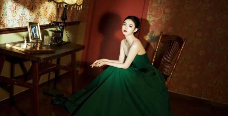 说到令人眼前一亮的造型,林允这身复古绿造型就蛮新奇的,加上复古的盘发,妥妥的复古港风美人。