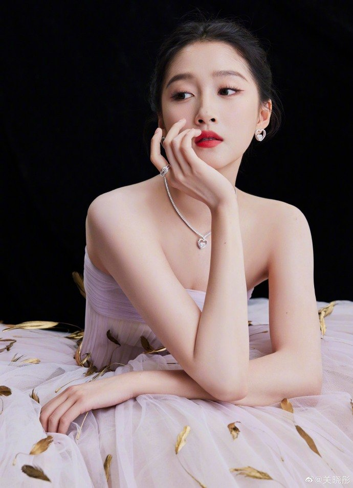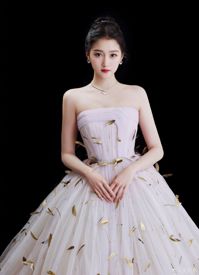 这种礼服虽然说是中规中矩,但比较容易驾驭,也蛮适合关晓彤大气的长相。
