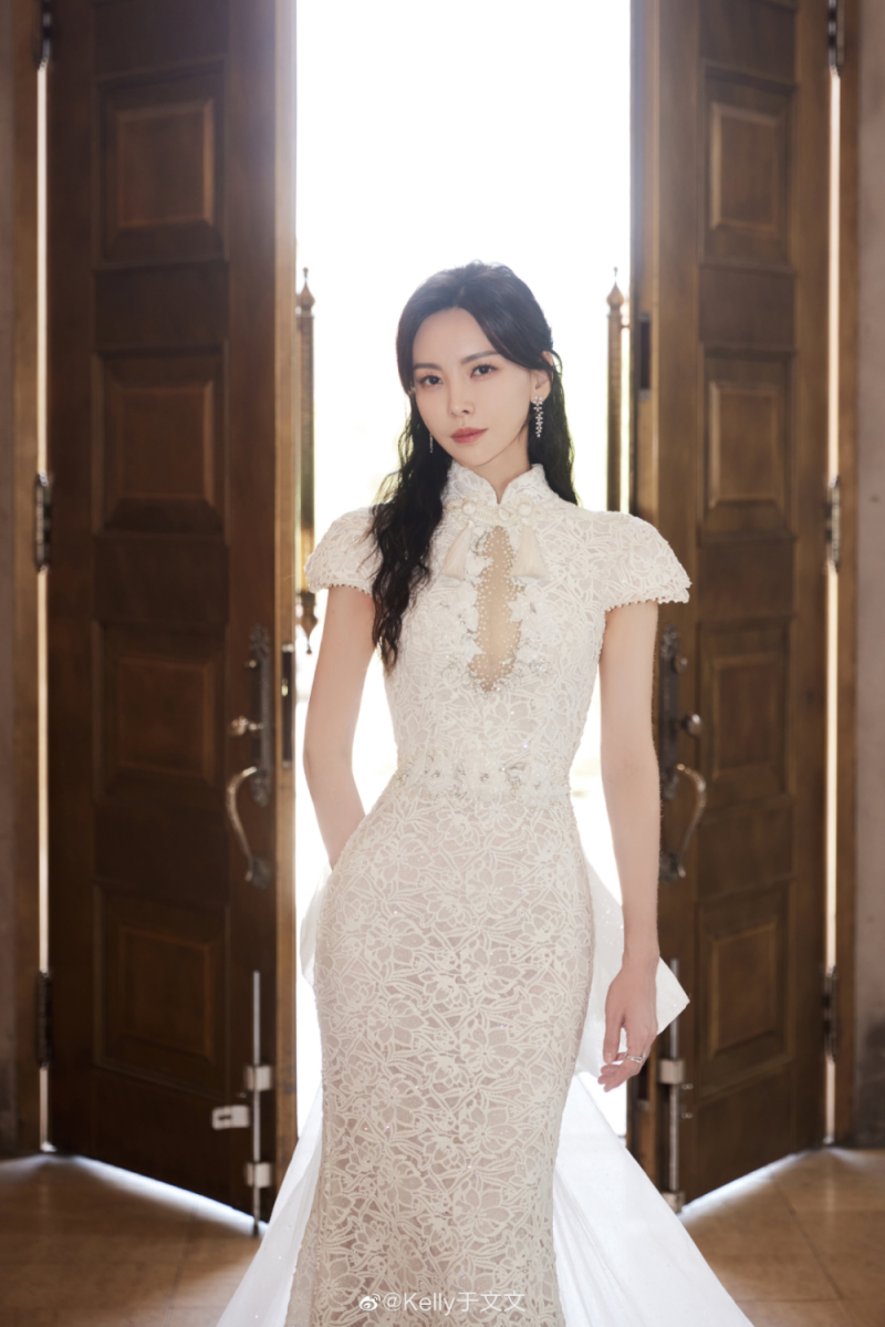 于文文的这身白色旗袍也很有看头,而且被于文文穿出了端庄又带着几分个性的味道。