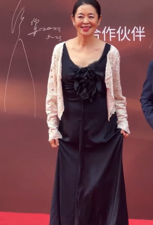 70岁的刘晓庆这次低调了一番,一身黑色西装裙装,包裹得“严严实实”,不过领口处的绿宝石很是耀眼。