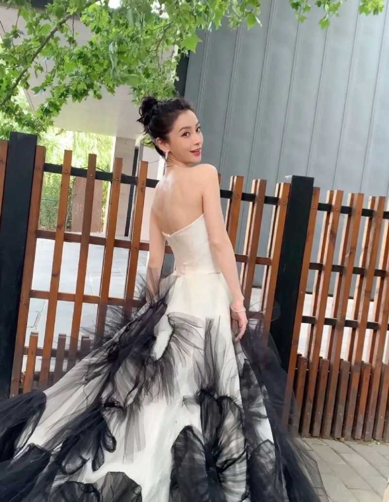 杨颖每次的红毯造型都很惊艳,这次选择的是国风墨色礼裙。