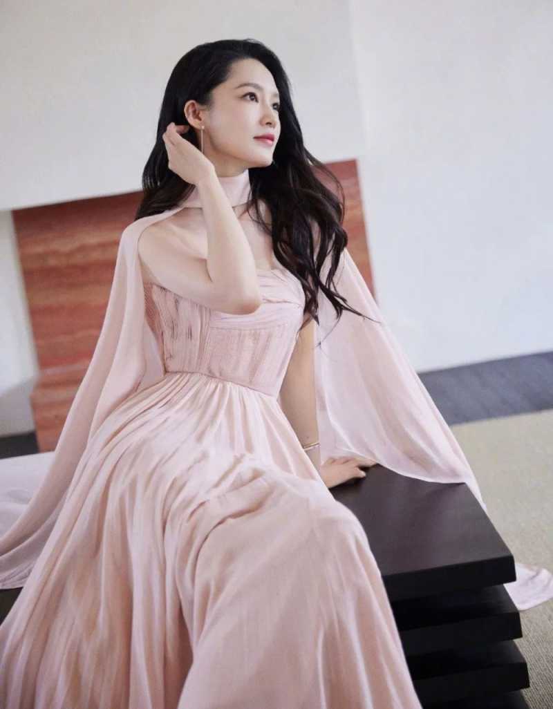 李沁是首波晒出造型图的女星,发型简单利落地盘起来,一身粉色轻纱连衣裙,最特别的是从脖子披下来的披风,给这个“仙气”的造型又增添了几分御姐气场。