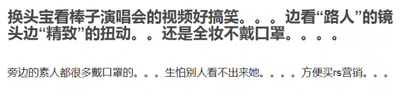 去看韩星演唱会的中国明星里,baby的存在感最高,她化着精致妆容,摘下口罩,对着路人的镜头各种表现,好像生怕别人没认出她。