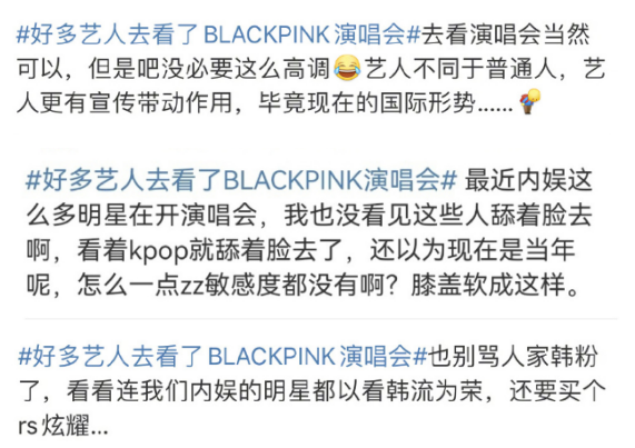 去看韩团演唱会,好像已经成了明星们的一种炫耀资本。谁去了演唱会买个热搜,谁骨折了也要去再买个热搜,甚至没去都要买个热搜,越看越荒谬。
