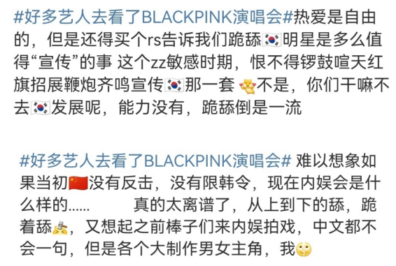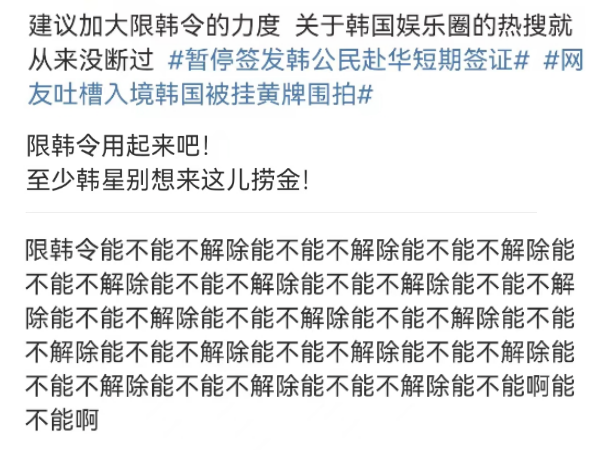 “追星和热爱是自由的,但是还买个热搜告诉我们跪舔韩国明星是多么值得宣传的事,简直离谱。”网友们认为这种以韩流为荣的心态和营销,简直是打了限韩令和民众的脸。