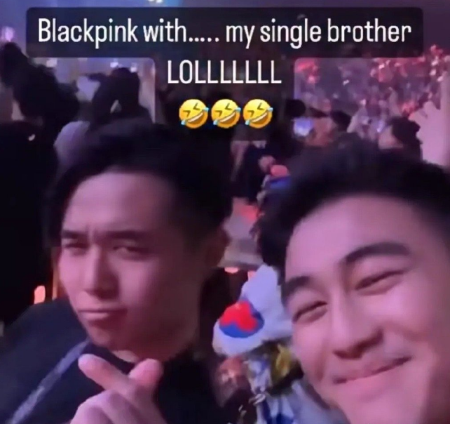 站在baby前排的何猷君,在现场与自己的兄弟何猷亨合影后,发出实时动态,特意标注了自己这是在BLACKPINK演唱会上。