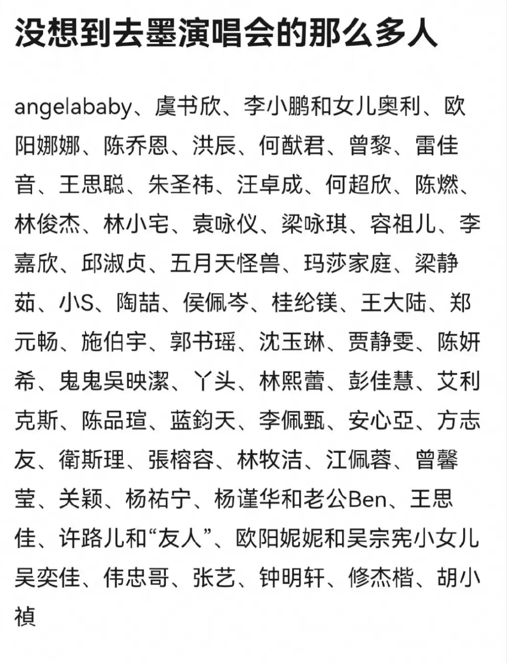 除了这些被拍到的明星,据传还有很多中国艺人都到了演唱会现场,这场面阵容简直不输内娱任何一场盛典活动。