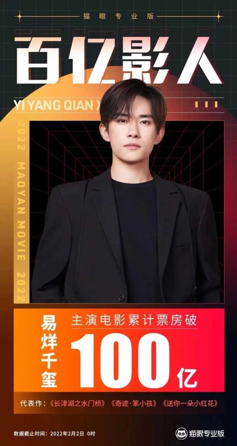 后来易烊千玺又主演了《长津湖》、《奇迹·笨小孩》、《满江红》等电影,参演了《中国医生》、《个十百千万》等电影。