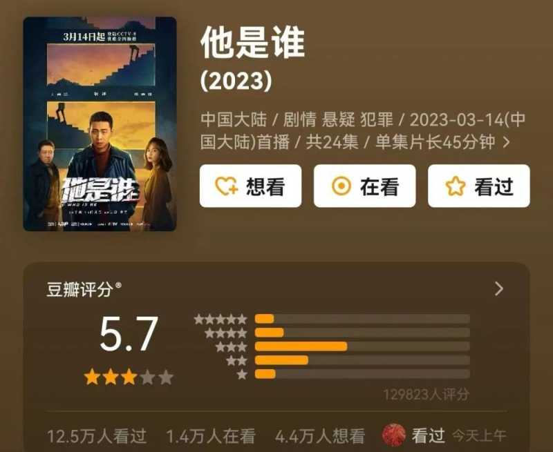 《狂飙》播完不久,出于对张译的信任,大家直接无脑去冲他的新剧《他是谁》,结果让人失望不已。这部剧高开低走,从开分的8.2沦落到了如今的5.7,除了剧情的拉胯,张译角色的固化饱受争议。