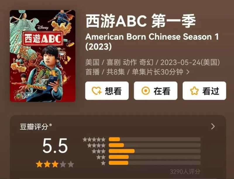 这两天,一部名叫《西游ABC》的美剧一上映就差评如潮,目前只拿到了5.5的低分,小8目测这个分数还要持续下跌,因为真的没人忍得了。