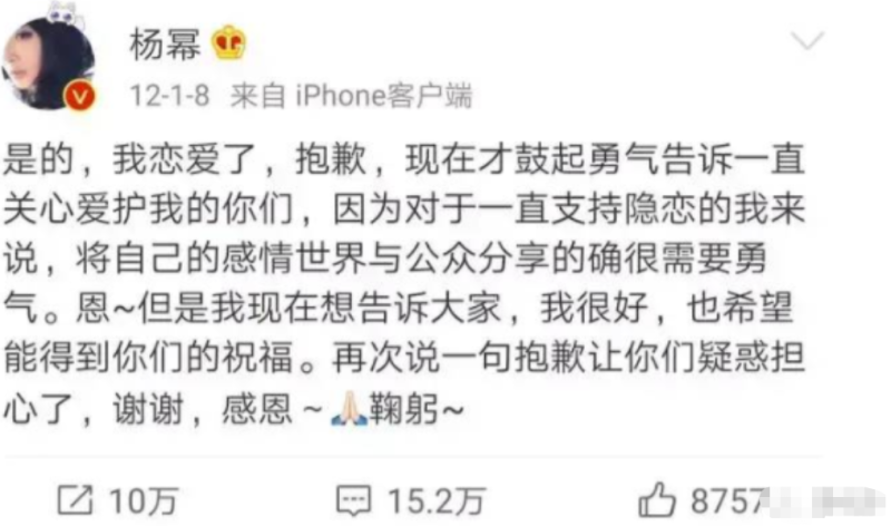 “我恋爱了,抱歉现在才鼓起勇气告诉一直关心爱护我的你们……”