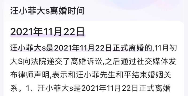 要知道,汪小菲和大S的离婚时间是在2021年的11月22日,当时是女方向法院提交了离婚的申请,再通过社交平台发布了律师声明,说已经和汪小菲结束了婚姻关系。