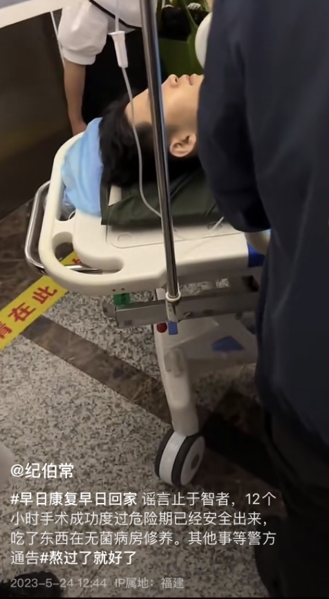 在此之前,网上也有传闻称石佳明因为失血严重仍没能抢救过来,对此石佳明的叔叔则公开回应予以辟谣,晒出了石佳明从手术室出来的视频。