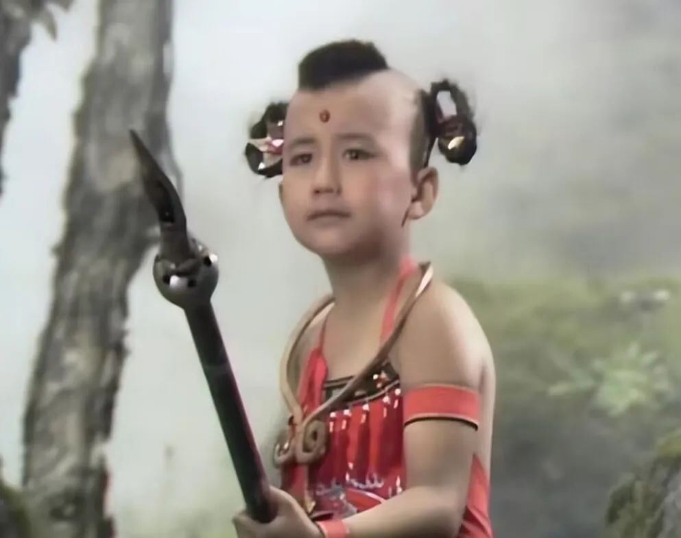 相信不少人记忆中的红孩儿就是这个手持红缨枪,穿着红肚兜,一脸傲气的经典模样。