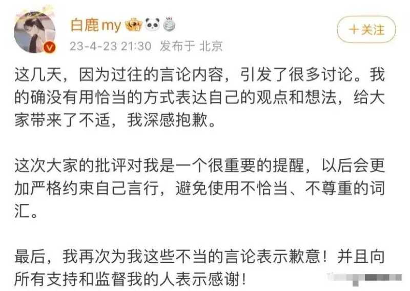 舆论持续发酵,白鹿沉默了一阵后,终于发文道歉,为过往言论表示歉意。然而,她一边道歉,一边删评,再次刷新了网友对她的认知。