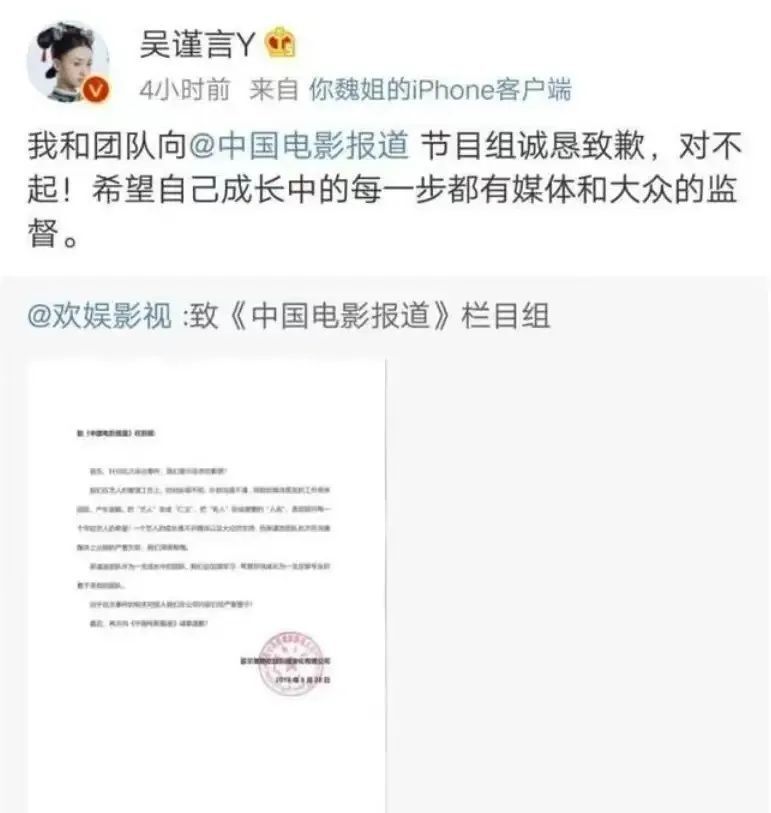 她的这一行为被官媒批评,之后,吴谨言发文道歉,但耍大牌一事,已经让她的路人缘岌岌可危。