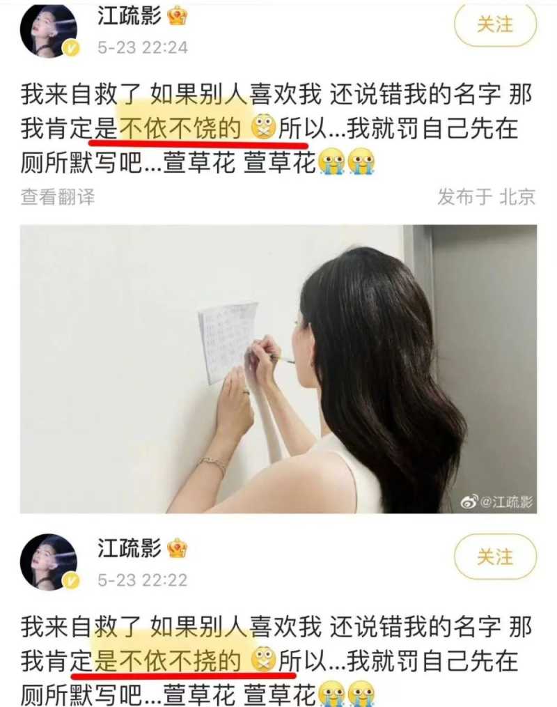 事后回应,江疏影又把“不依不饶”打成“不依不挠”,连续两次弄错字,真是一言难尽。