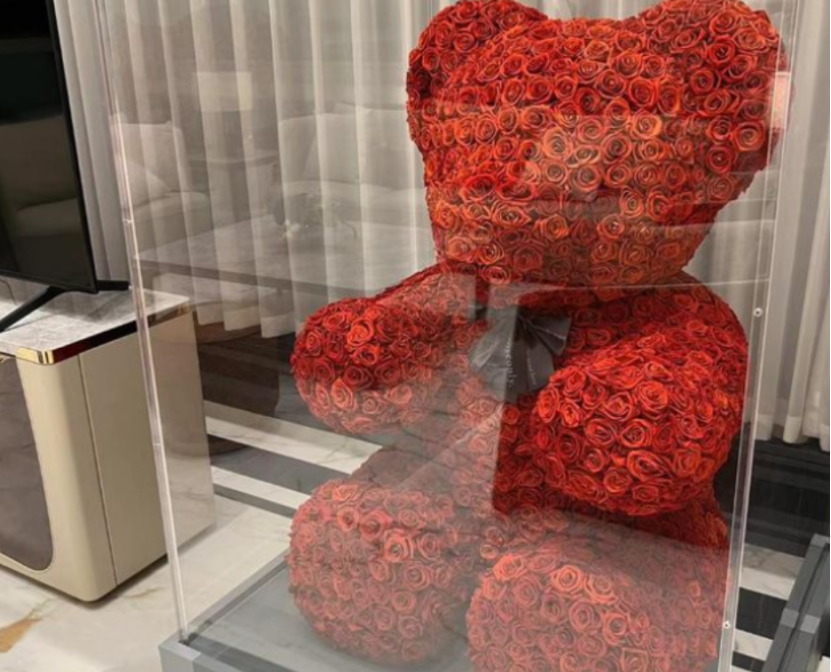 之前李湘在520送给了她一款昂贵的玫瑰熊摆件,据悉其价值10万元,被王诗龄放在了家中的客厅位置。