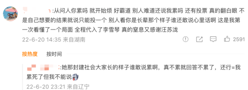 其实在这场风波中,能非常强烈的感受到,宋丹丹与其余年轻嘉宾的割裂感。宋丹丹觉得自己可以跟年轻人打成一片,但总是在不自觉中,露出来自长辈的规训和压制。