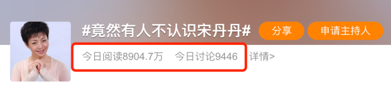 一个名为“竟然有人不认识宋丹丹”的话题冲上了热搜,还获得了近9000万的阅读量。