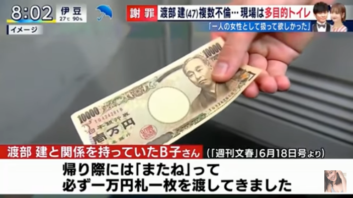 20年,日媒《周刊文春》曝光了渡部建的淫乱行为。
