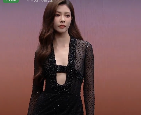 这种深V修身的鱼尾裙对身材的要求其实很高,加上大腿位置还是透视的布料,宋妍霏对自己的身材确实十分自信。