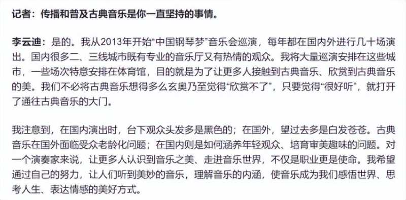 李云迪是一位有着出色钢琴天赋的音乐家。年轻时,他就赢得了官方和公众的认可,并被冠以“钢琴小王子”的称号。