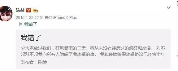 2015年,陈赫因为拍摄《医馆笑传》与张子萱传出了绯闻,不过彼时他早已成家立业,于是面对出轨的绯闻,陈赫只好发微博承认与妻子许婧离婚,并且还称两人已经秘密签署离婚协议已经快半年时间。