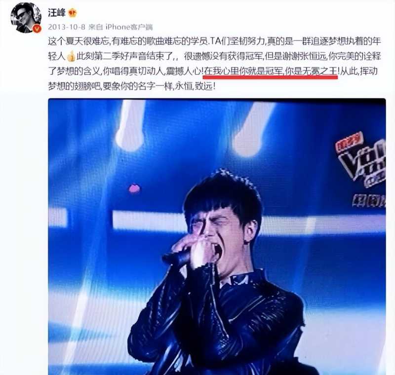 为此,他的导师汪峰还特意发布了一条动态,力挺他有拿冠军的实力,还祝愿他能够拥有绚烂的未来。