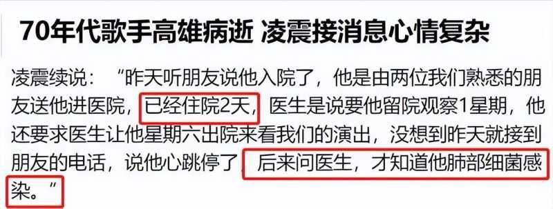 5、70年代男歌手高雄因肺部感染离世,死前还惦记观看好友演唱会