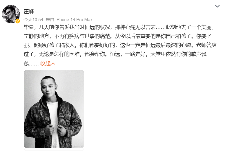 对于张恒远的粉丝来说,这个噩耗来得太突然太意外,明明一个月前他还和汪峰进行了登台演出,还录制了宣传物料。