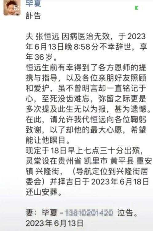 孩子出生还不到一年,张恒远被曝因为罹患黑色素瘤离世,享年36岁。