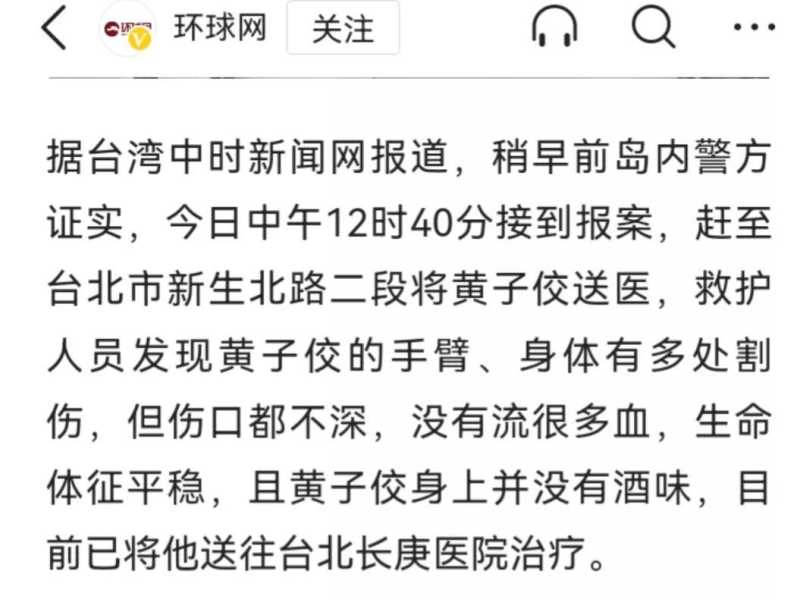 后来,黄子佼被人送往了医院,救护人员发现他的手臂,身体有多处割伤,但是伤口都不深,没有流很多血,生命体征平稳,而且身上也没有酒味,也就是说他并没有喝酒。