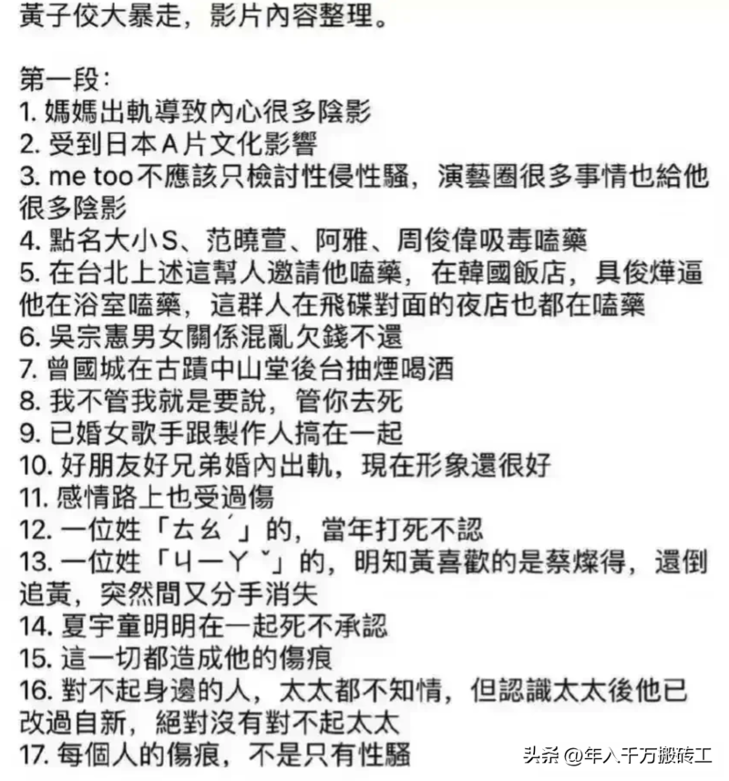 黄子佼不仅自曝了他自己的丑闻,同时也犹如一把火,点燃了整个娱乐圈的乱象。
