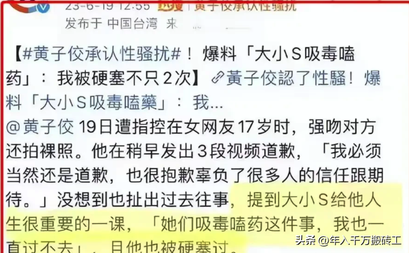 他接着爆出,大小S等人涉嫌吸毒,吴宗宪欠钱不还,艺人婚内出轨……