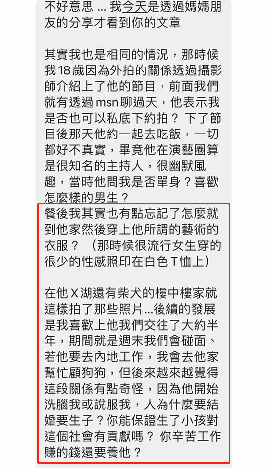 回顾一下爆料的缘起:有个勇敢的女生在网上分享了她的遭遇,描述自己曾经遭受前辈的性骚扰,甚至被无情地拍摄裸照。