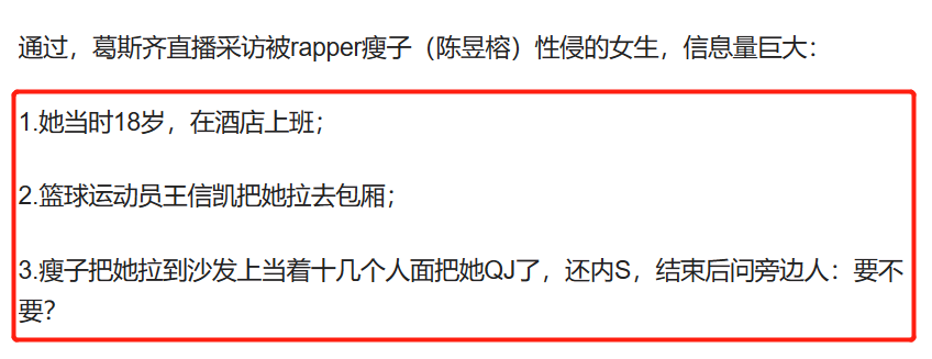 当晚,葛斯齐与指控瘦子性侵的受害者进行了直播连线。
