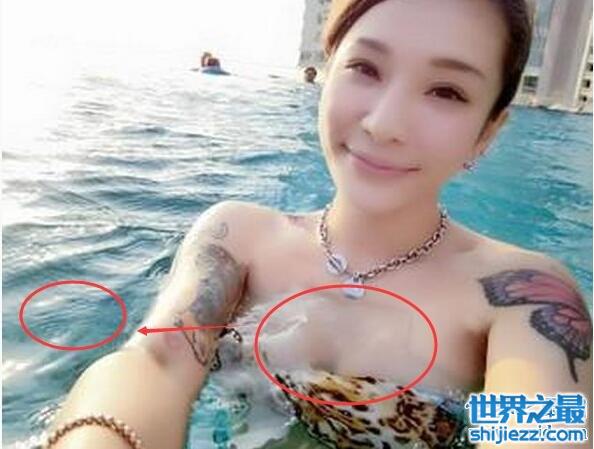 不仅不仅是锁骨放硬币,胸前还能摊水,看看旁边的那个妹子,没有对比就没有伤害啊,你就不该和梁云菲一起拍照,瞬间秒杀。