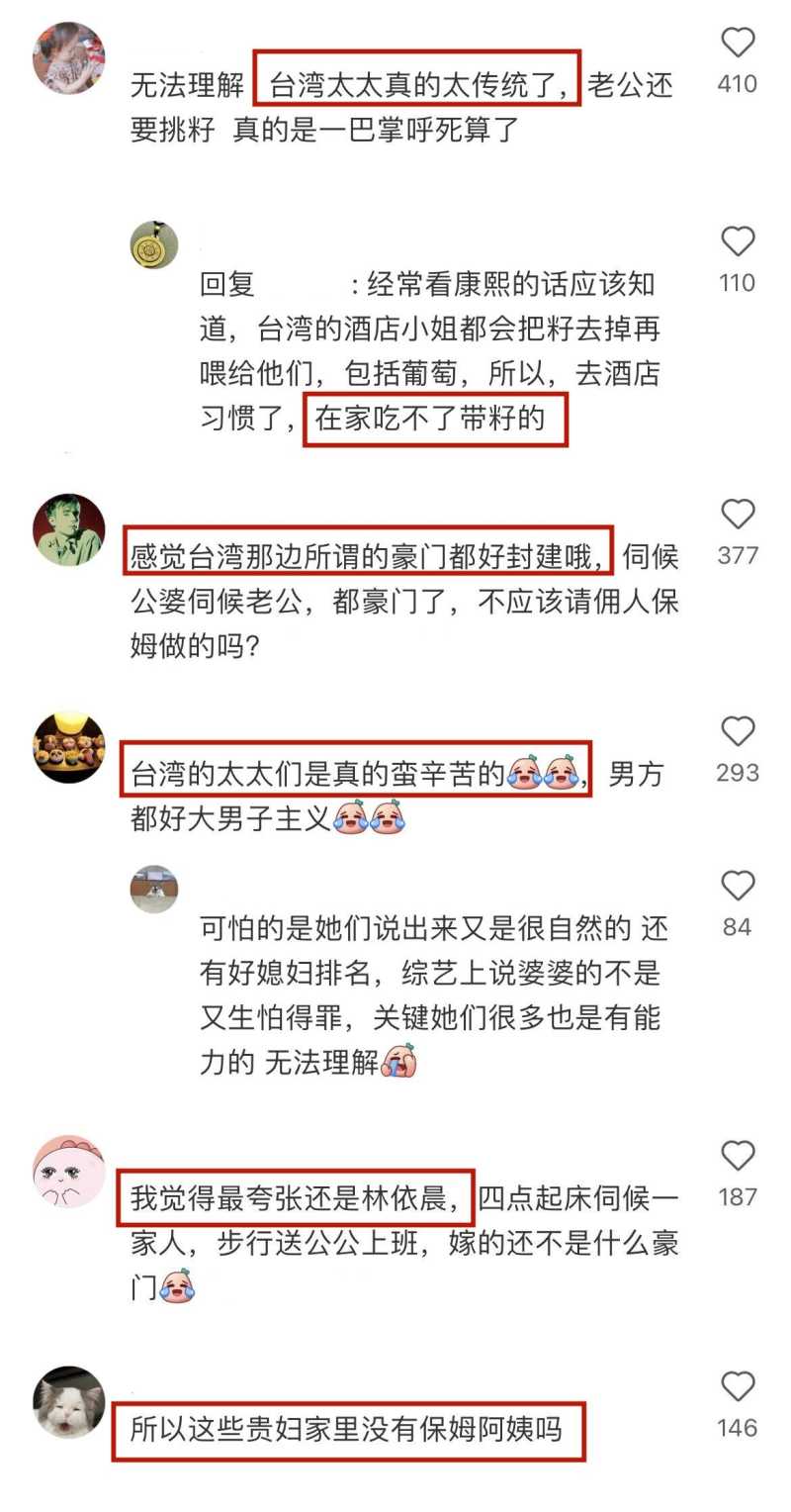 无法理解台湾省的贵妇居然这么传统,伺候公婆、老公、孩子,全部都要一手包办,都已经嫁富豪了,还要活得这么累,实在太能忍了!