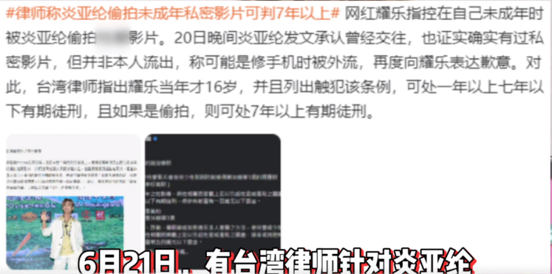 6月20日,台湾一男网红,16岁的邱耀乐在网上曝出大瓜,发文控诉炎亚纶对自己“下手”,对未成年的他“强行进入”。消息一出,震惊全网。