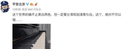 因此,在这一消息曝光后,《平安北京》也发文提醒网友:“世界确实不止黑白,但我们一定要分清、区分黑白,这绝对不能错。
